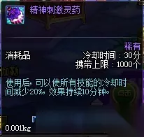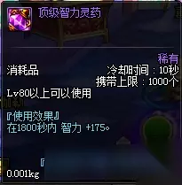 这两种药剂属于同一种类,区别只是提升智力和力量的区别。可以通过拍卖行直接购买,价格在3000金币左右一个,也可以自己的副职业选择炼金术师来进行制作。同样是直接提升力量或者智力,不过这个药剂的提升是比较大的,有175点属性值,效果持续1800秒也就是30分钟。但是效果会因为返回城镇而消失,所以每进一次副本就需要使用1个。 三、减少技能CD药剂