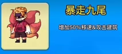 1.别惹农夫暴走九尾皮肤解锁方式是进入联机模式。 2.当这把游戏内存在4代目和赤血尖椒隐藏皮肤时,获得胜利就可以解锁了。 3.技能是通关持续消耗血量提升自己50%的移动速度,还能攻击前方三格所有建筑。