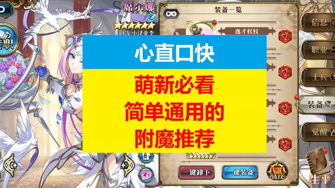 梦幻模拟战联动相羽新也毕业装备附魔精通推荐! 梦幻模拟战相羽新也是个魔物,能多次攻击,有狼人和吸血蝙蝠小兵,感觉打个PVE没啥问题,PVP的话可能会被圣职天罚克制,不过这个角色减伤可以带暗龙甲,抗个法师应该抗一下问题不大。 相羽新也武器装备推荐:弥米尔的战锤/熔鳞之怒/遣罚碎骨锤/拉格纳罗克 相羽新也衣服装备推荐:浩劫角铠/炎灵之袍/提娅玛特之佑 相羽新也头饰装备推荐:提尔之怒/猎魔礼帽/星绛之幕 相羽新也饰品装备推荐:霸者徽章/星运时轨/渴血之钉/铸剑者勋章/神行靴/其他加攻击饰品 相羽新也精通一般是常规的攻血防,武器和饰品可以打技巧,竞技场精通可以打暴击,或者减暴击减爆伤 相羽新也附魔推荐晨辉/满月/清风 总的来说这个角色打PVE没啥问题,PVP可能就是被一些圣职克制,抽个种子练起来也问题不大。