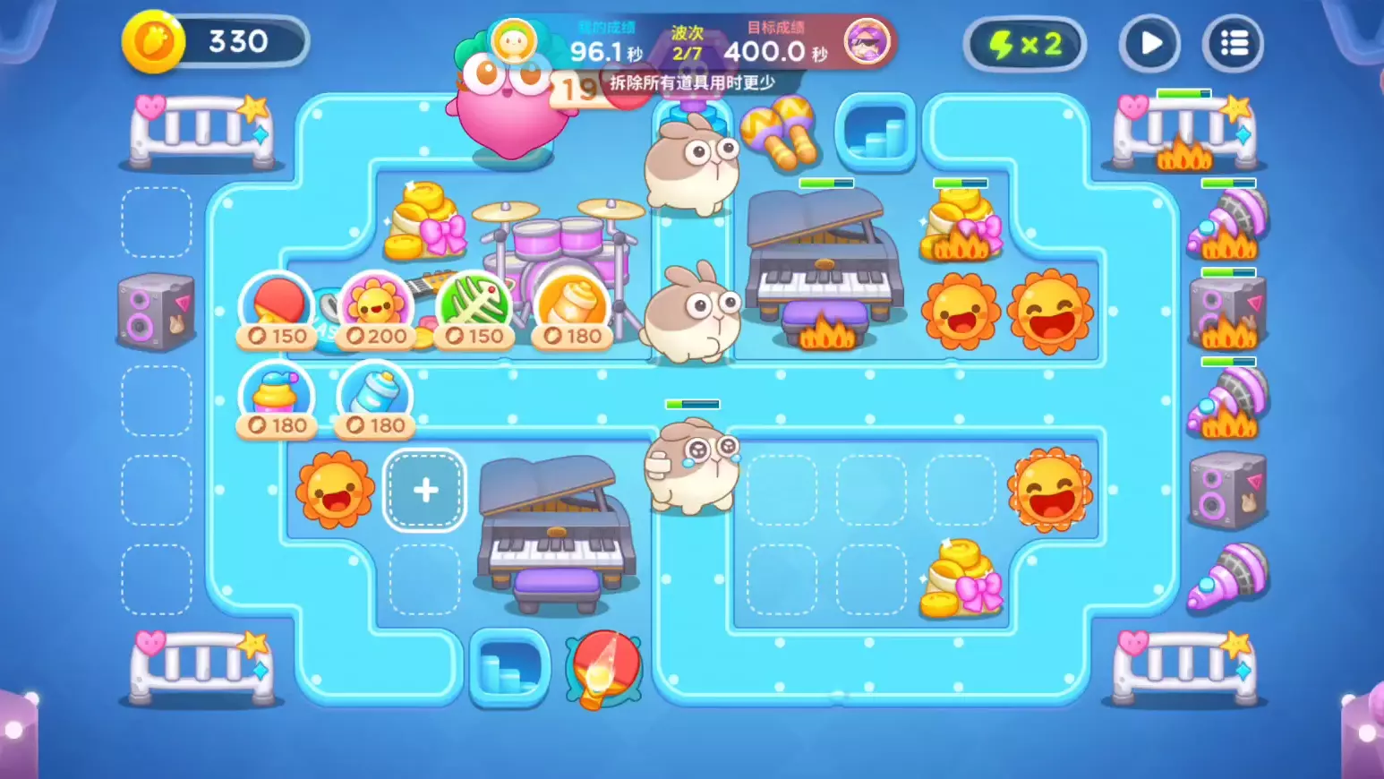 尽量使用一倍速,二倍速可能会出现伤害bug,输出变低,发现飞机清第一个障碍,一倍速12.7s,两倍速13.4s,非常奇怪吖
