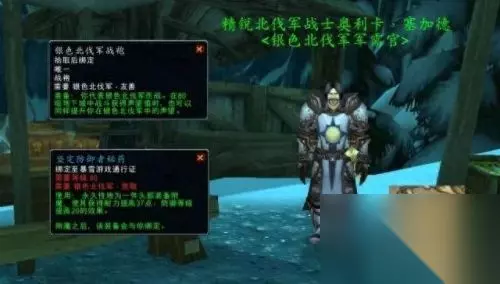 银色北伐军的军需官位于冰冠冰川的银色前线基地,声望友善时可以购买【银色北伐军战袍】,声望崇敬后可以购买头部附魔【坚定防御者秘药】,还可以邮寄给战网下其他角色。