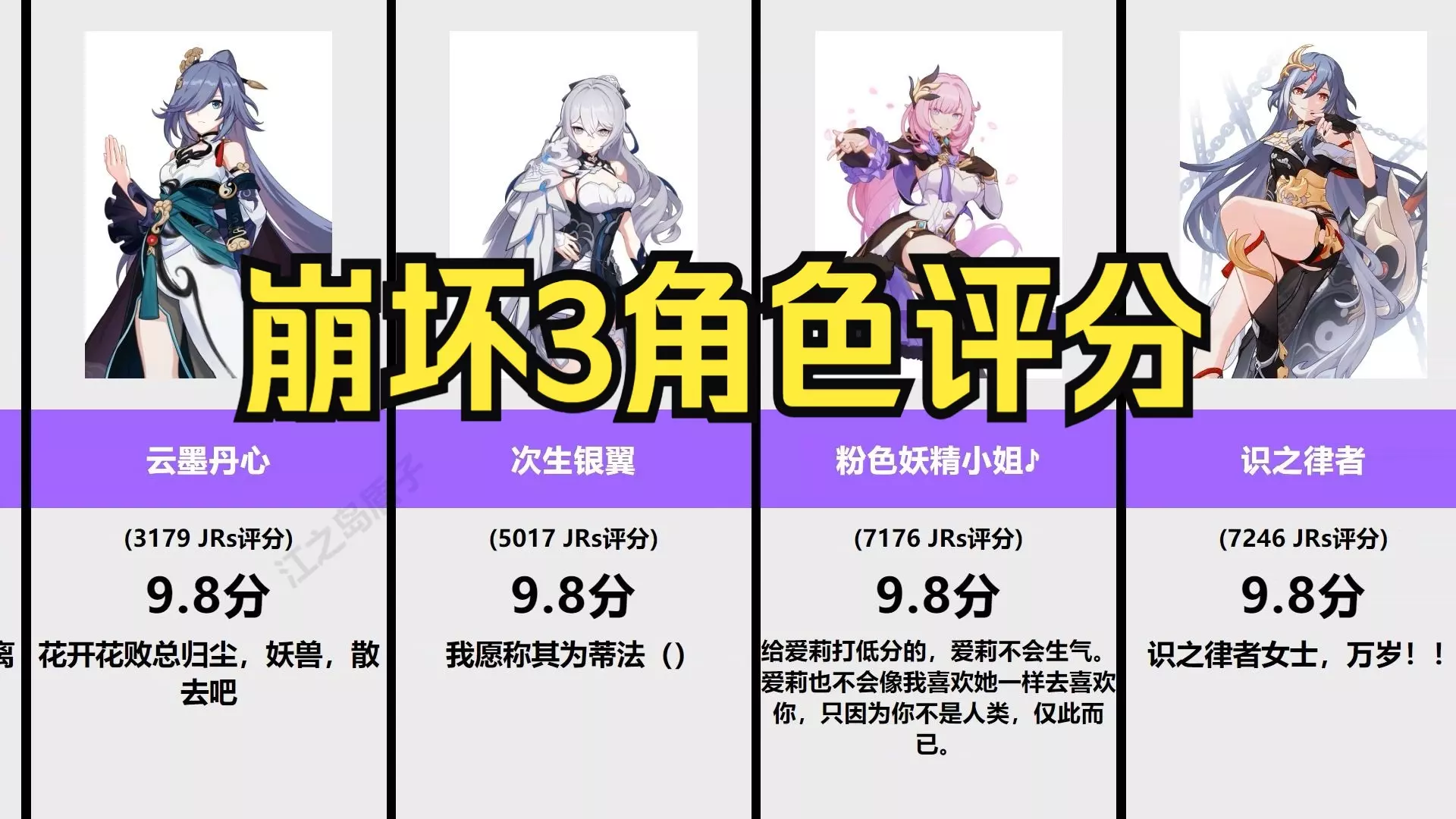 崩坏3角色评分,你最喜欢谁?【虎扑锐评】
