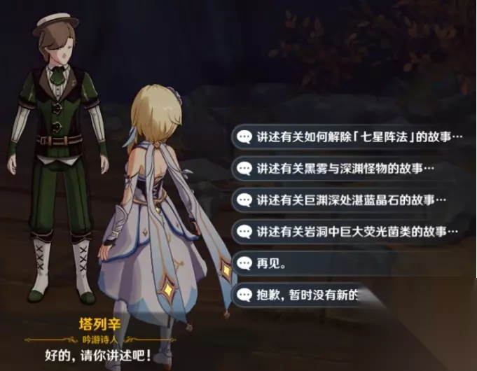 第一天 共有七个故事要讲,如果选项少可能是已经讲过,也可能是还没完成任务所以无法叙述故事