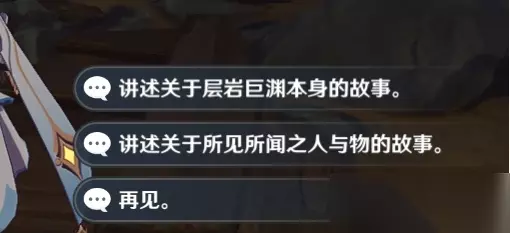 讲述关于所见所闻之人与物的故事里有三个故事 第一个故事需要完成:完成渊青宝珠的收集,获取隐藏成就:CREDE THENEBRAE 第二个故事需要完成:魔神任务:回响渊底的安魂曲 第三个故事需要完成:隐藏任务:连队消失在深岩