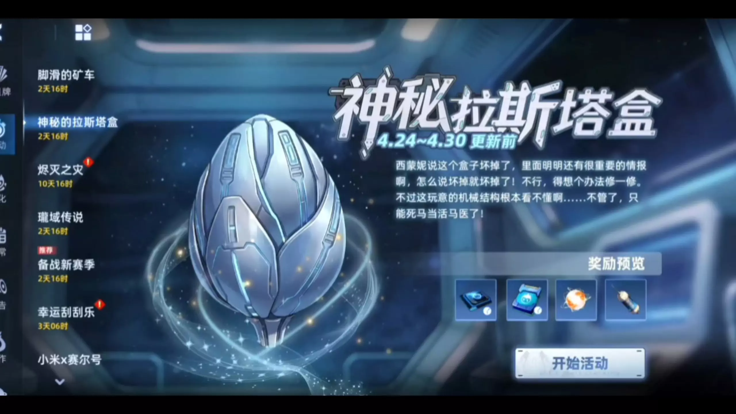 赛尔号4月24日开启多项更新:微光秘境更新石块技能,天邪关卡移植,还有脚滑的矿车、神秘拉斯塔盒等活动,参与可领星际密令等好礼,同时精灵西蒙妮登场,挑战可兑换该精灵及专属特性。