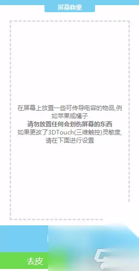 影响:touchscale手机沉重的数据并没有很准确,特别是用户用了钢化膜或者换过屏幕,都会影响touchscale的称重效果,手机老化也会影响称重精度,而且在使用的时候一定要吧手机放平了 说明:只对携带3Dtouch功能的手机有效果;