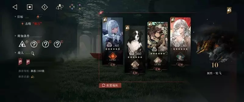 注意:①每3回合有一个眩晕,眩晕后基本上直接被秒了,所以需要2、5、8(类推)出梁月大招(可免疫),因此要提前过牌攒激情,带未尽的调律可以避免梁月没牌的悲剧。 ②第一回合过两张梁月和两张纸新圈儿手牌,后面回合需要保证苏苏的自愈给到位,每回合会有两个角色被打掉一半血,挂自愈死不掉。 ③每回合要把中间的标打掉,有5点血,追击狂想红弩箭一张牌可以打两点,带纸新圈儿可以多打一点,基本过两张红弩箭的牌或者一张红弩箭+一张任意攻击牌就够了。 ④把握好梁月大招爪印数量,伤害主要靠梁月追击、大招和背后灵打。