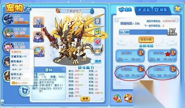 努力果搭配:精力252物攻252魔抗4 优点:主要靠“坚如磐石”限伤可以抵挡大量伤害,波及场下宠物也是很高的波及量。 缺点:技能值太少 总结:能打得宠物其实不多,虽然非常克制翼系,和火系和冰系的宠物,但是现在的“傲凌冰龙王”基本看不到,只能看到“王者独角兽”,再加上现在删除技能值的宠物太多,蹦神满天飞,没个硬控和回合技能值得招式混不下去去了。