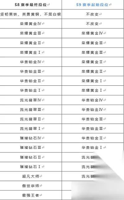英雄联盟手游s8赛季结束时间及段位奖励结算一览 4月20日。 英雄联盟手游S8赛季将于2023年4月20日结束,21日开启全新S9赛季。 在4月20日结束S8赛季后,当英雄联盟手游版本更新后将会带来全新的S9赛季,届时会有全新英雄“图奇”登场,加入新装备,召唤师等级突破40级后可升级新系统,还有全新系列的赛季征途奖励皮肤“王牌舰长 崔斯特”,新的峡谷宝典、新活动、新皮肤都讲到来。 S8赛季结束公告 1、排位赛段位重置 对于在S8赛季已完成定位赛的玩家来说,新赛季的起始段位将取决于S8赛季结束时的最终段位,详情如下: