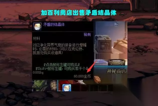然而在国服呢,别说交易问题了,直接就把这2个袋子移除了,无法通过新副本获得白金灿烂徽章,想要吗?那得氪金才行呀! 【3、国服特色矛盾结晶体】 都在说国服各种阉割减负,那国服有没有什么新增的稀有道具呢?答案是有的,那就是“矛盾结晶体”!