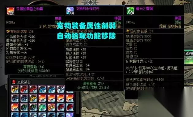 如果国服直接照搬韩服内容,那的确没什么问题,然后再来看看咱们国服的“特色优化”: 【1、宠物装备大削弱!】 以“红色宠物装备”为例,原本是【5%攻击强化+16属强】,削弱后变成了【4%攻击强化+8属强】,这就明确告诉了玩家,副本产出的宠物装备,依旧不如礼包宠物装备,所以该氪金还得氪金。