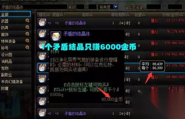 矛盾结晶体可以用来增幅,所以也算是“硬通货”了,如果用矛盾结晶体来替换白金、灿烂徽章,我个人的话,觉得勉强还可以接受。 但是,重点来了,虽然新副本产出矛盾结晶体,但价格并不便宜! 加百利出售的“矛盾结晶体”,1个就要8万金币,看了下跨3a的物价,拍卖行售价大概在8.6万左右,也就是1个矛盾结晶体只能赚6000金币,而且这还只是现在的价格,指不定之后矛盾结晶降价,还得赔本呢。