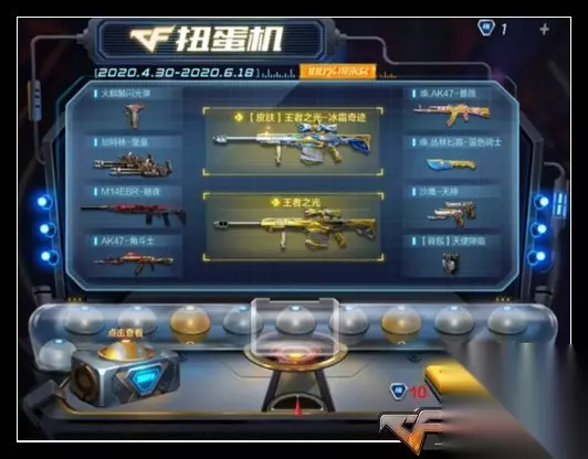 10. 活动名:扭蛋机 福利指数:★★★★★ 参与难度:★★★★ 活动时间:4.30-6.18 活动奖励:王者武器、英雄级武器等 参与方法:游戏内