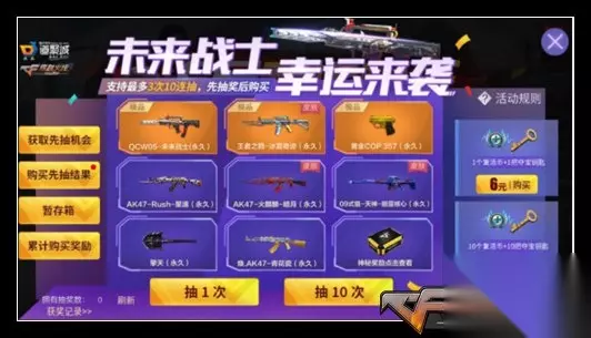 7. 活动名:未来战士 幸运来袭 福利指数:★★★★★ 参与难度:★★★★ 活动时间:5.15-6.14 活动奖励:英雄级武器、钻石等 参与方法:游戏内
