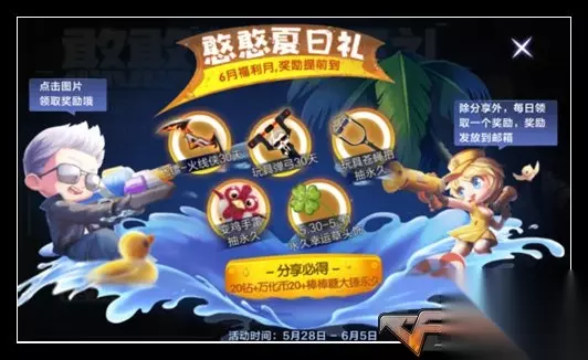 5. 活动名:憨憨夏日礼 福利指数:★★★★ 参与难度:★ 活动时间:5.28-6.5 活动奖励:限定头饰、永久武器等 参与方法:游戏内