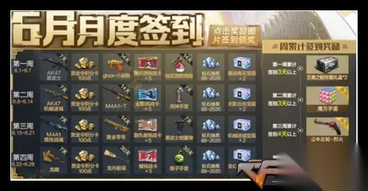—— 内部活动 —— 1. 活动名:6月月度签到 福利指数:★★★★ 参与难度:★★★ 活动时间:6.1-6.28 活动奖励:永久武器、钻石、英雄级武器等 参与方法:游戏内