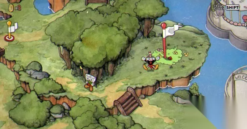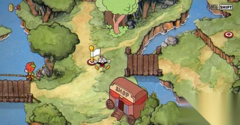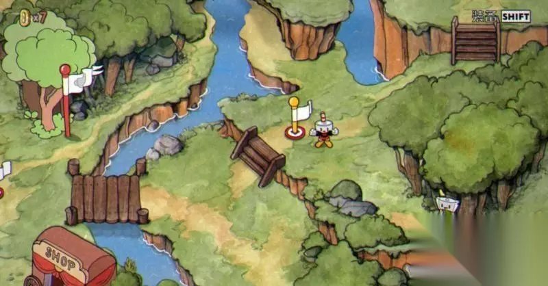 茶杯头第一章共有8个关卡,分别是罪恶森林、植物恐慌、淤泥的诡计、夜总会之灾、陵墓一、齐柏林的威胁、大闹树梢、花之怒。 1、罪恶森林 此关由商店上方进入,无BOSS,有5个金币可拿,建议买完称手的道具后直接来拿这5个金币,打完后还会解锁右边的桥梁。