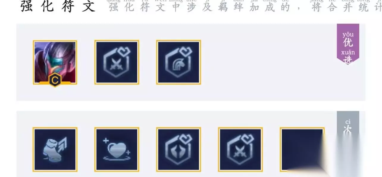 2、强化符文优选夺影术、决斗大师之心、黑客之心,次选羽量级选手1、复苏之风1、福牛守护者之心、决斗大师之心、黑客之心,如下图所示。