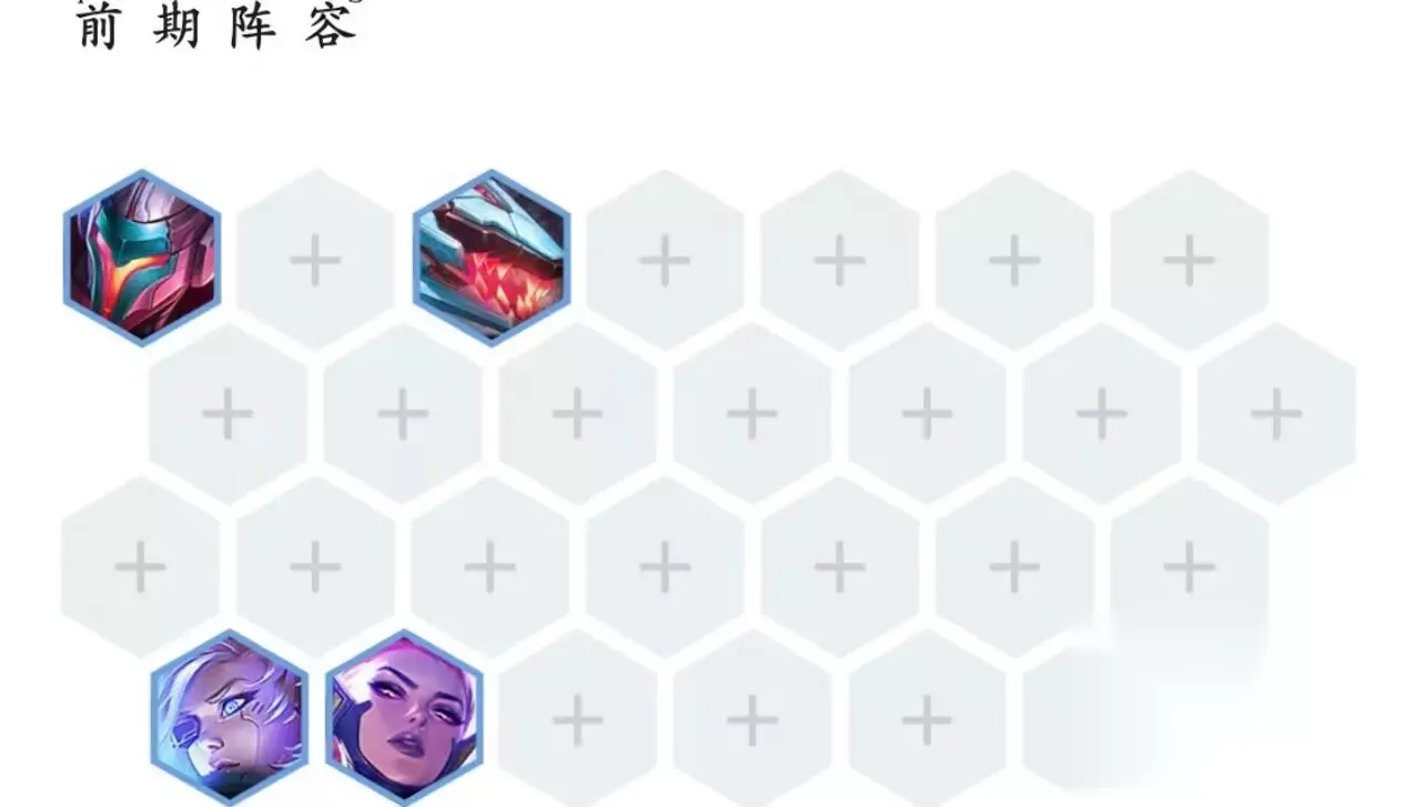 6、前期阵容:亚索、雷克顿在第一排抗伤,寒冰、天使在最后一排输出,如下图所示。