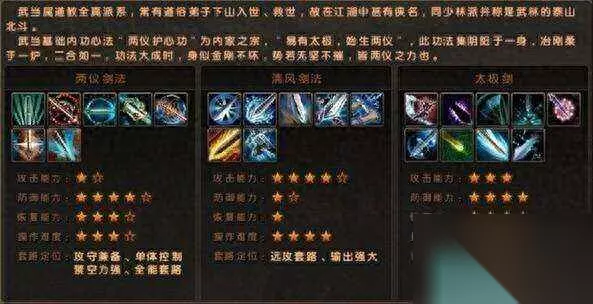 L2Y 武当派在游戏当中的定义和影视剧当中一样也是一个名门正派,在九阴真经的游戏当中这个门派的弟子更适合近战,所使用的武器是剑或者拳。适合持久群攻。门派武学有两仪剑法和太极剑以及清风剑法。在九阴真经的世界里都属于比较厉害的武功技法。L2Y