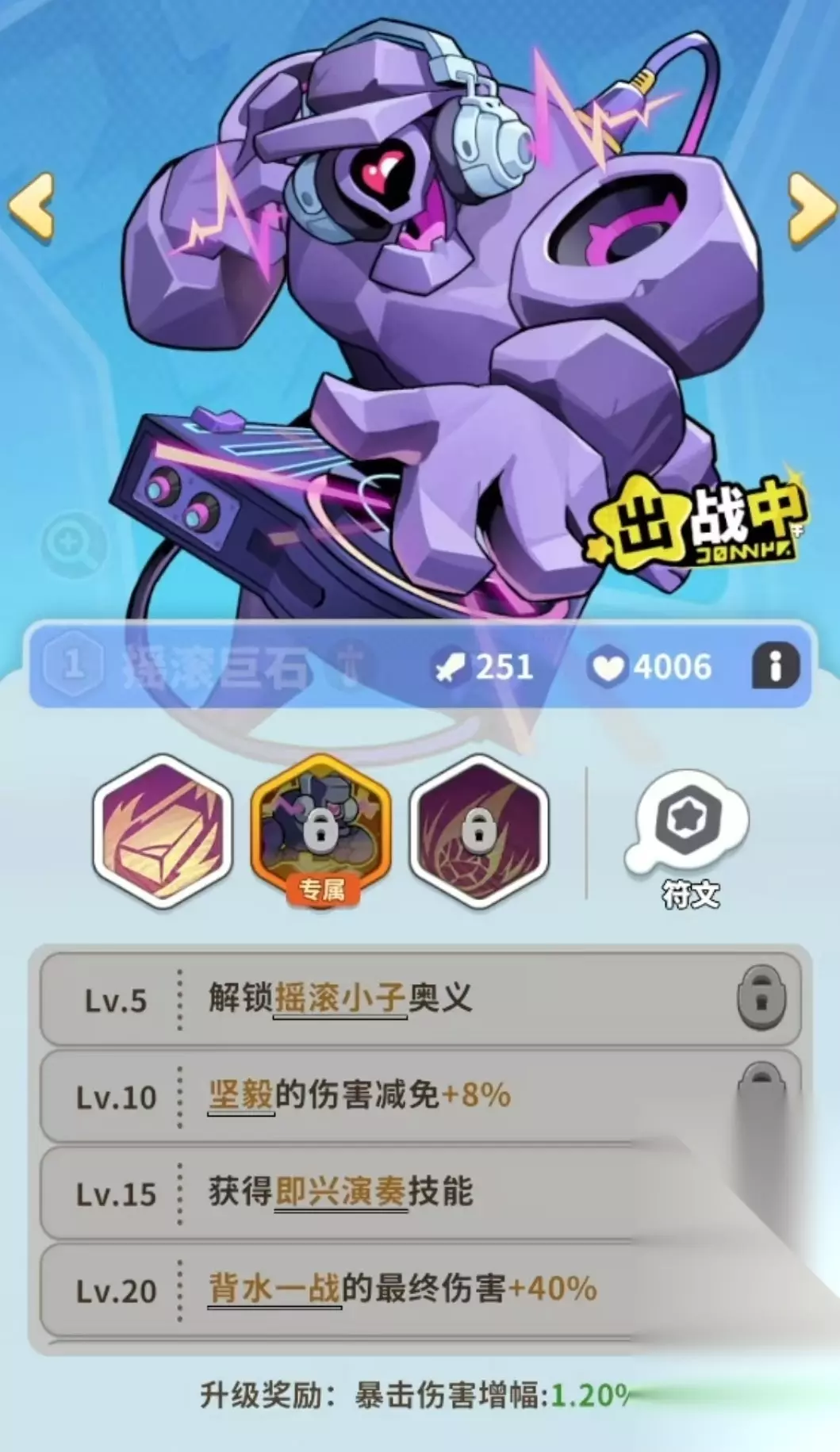 站位采用经典三角阵型:顶点部署战士型梦灵,承担近战接敌与范围控场任务;两侧后方配置远程输出与功能型辅助。推荐首发前排为摇滚巨石——其核心技能包含三段扇形音浪(高频AOE伤害)、每30秒释放一次大范围击飞技“摇滚小子”,并在首次生命值跌破60%时自动触发“飞天大锤”,附带击飞+伤害减免双重效果。中后期可依资源情况替换为关羽、亚瑟或海拉等高容错战士,强化前排持续作战能力。