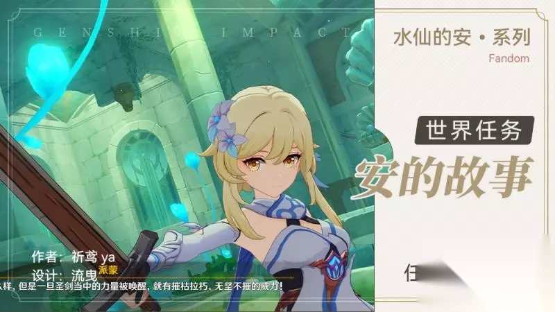 第二幕:镜中的王国 1、安的故事 需要先收集3个水种子,再靠近侦测晶体,就能开启大门,来到喷泉密室,进入漩涡,击败魔物,开启宝箱,来到教堂密室,取出水泡阵地的水种子,开启宝箱,会获得任务道具墨绿羽饰,进入喷泉密室,交付墨绿羽饰,取出水仙十字圣剑,任务结束。