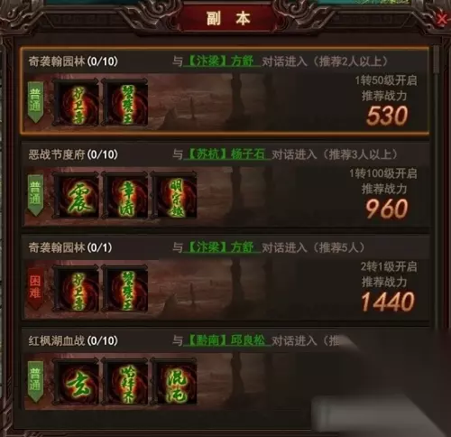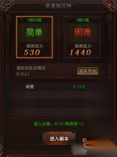 选择副本难度,进入副本,开始挑战;