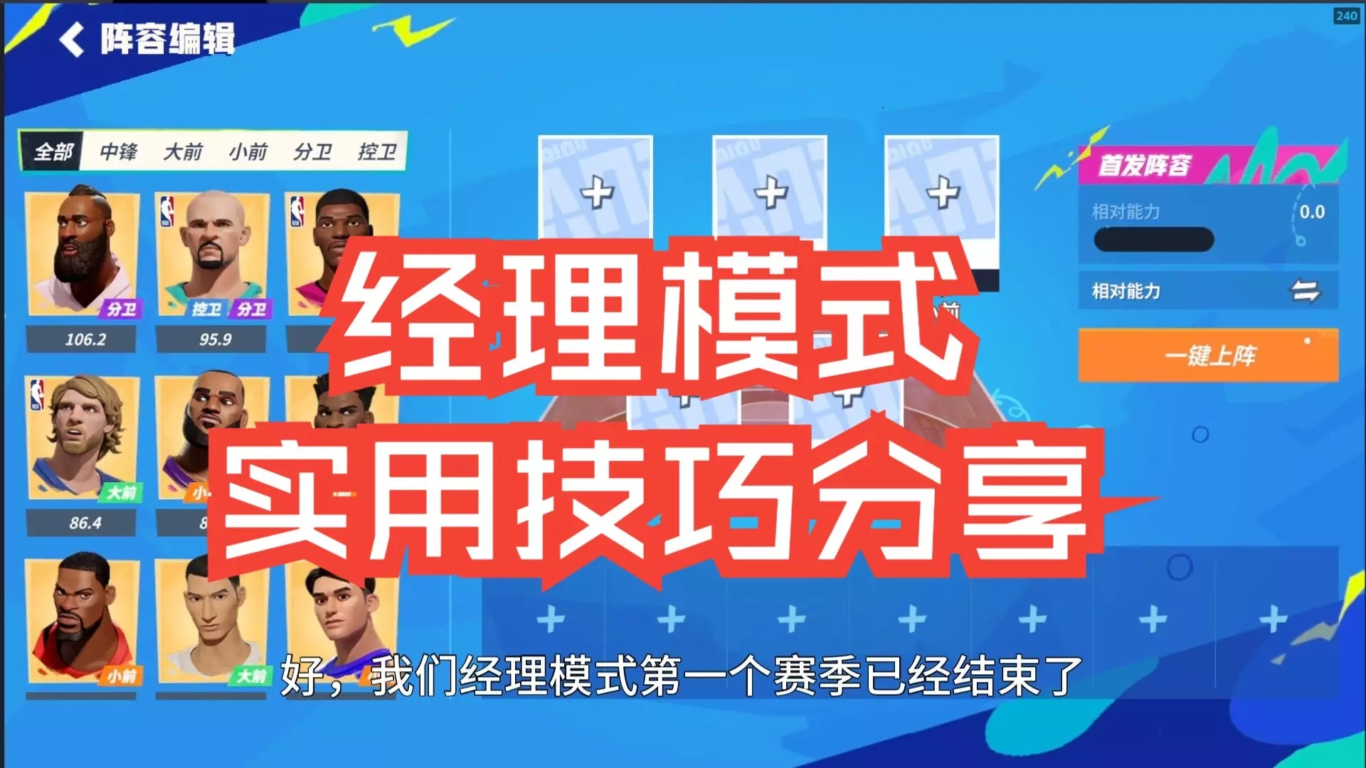 这是一篇篮球游戏经理模式的避坑攻略帖,展示了游戏内的球队球员阵容、球员属性面板以及转会签约界面,分享经理模式的科学玩法,帮助玩家合理搭建球队阵容。