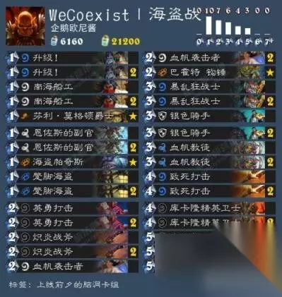 海盗战卡组介绍:随着更多的低费海盗和战士新职业橙的加入,新版本的海盗战预计会非常强势,在青玉魔像涨到4-4前就击败对手!
