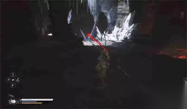9、山洞里冰火两重天,朝着左前方的冰块山洞进入。