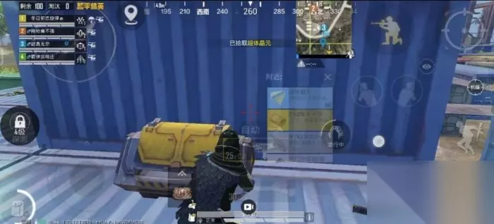 2、插件的解析: 接下来就是升级12级的过程中会慢慢解锁插件,也就是说玩家们升级到3级的时候会解锁一个蓝色的插件,然后再到6级的时候会在次解锁一个蓝色插件,到了最后9级就会在次解锁一个紫色插件的,一共只有三个插件的,每一种插件都会有这属于自己的效果的,玩家们可以寻找游戏中的金插,金插的话玩家可以随意替换,当然在这里建议玩家尽量的去替换蓝色的插件,因为金插>紫色插件>蓝色插件的,下面展示一些图片: 3、金插的显示图标: 这个就是所谓的金插,金插会在某些地方进行刷新出来的,这个东西个人感觉比较看运气的,当然打了这么多把的超体对抗,也知道金色插件常出现在那些像y城以及g港的上方房区和左边的房区,概率会比较大的,如果说玩家靠近金插有个20-30m左右就会有一个图标显示出来的,金插玩家拿完之后不能有多个金插,只能进行替换。