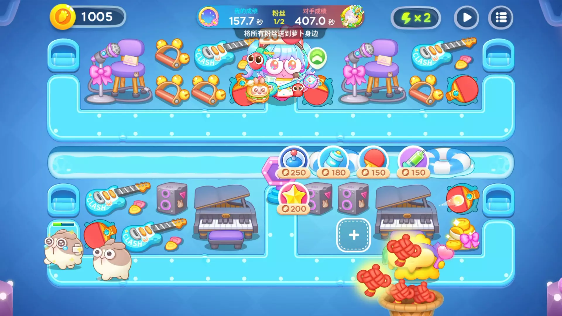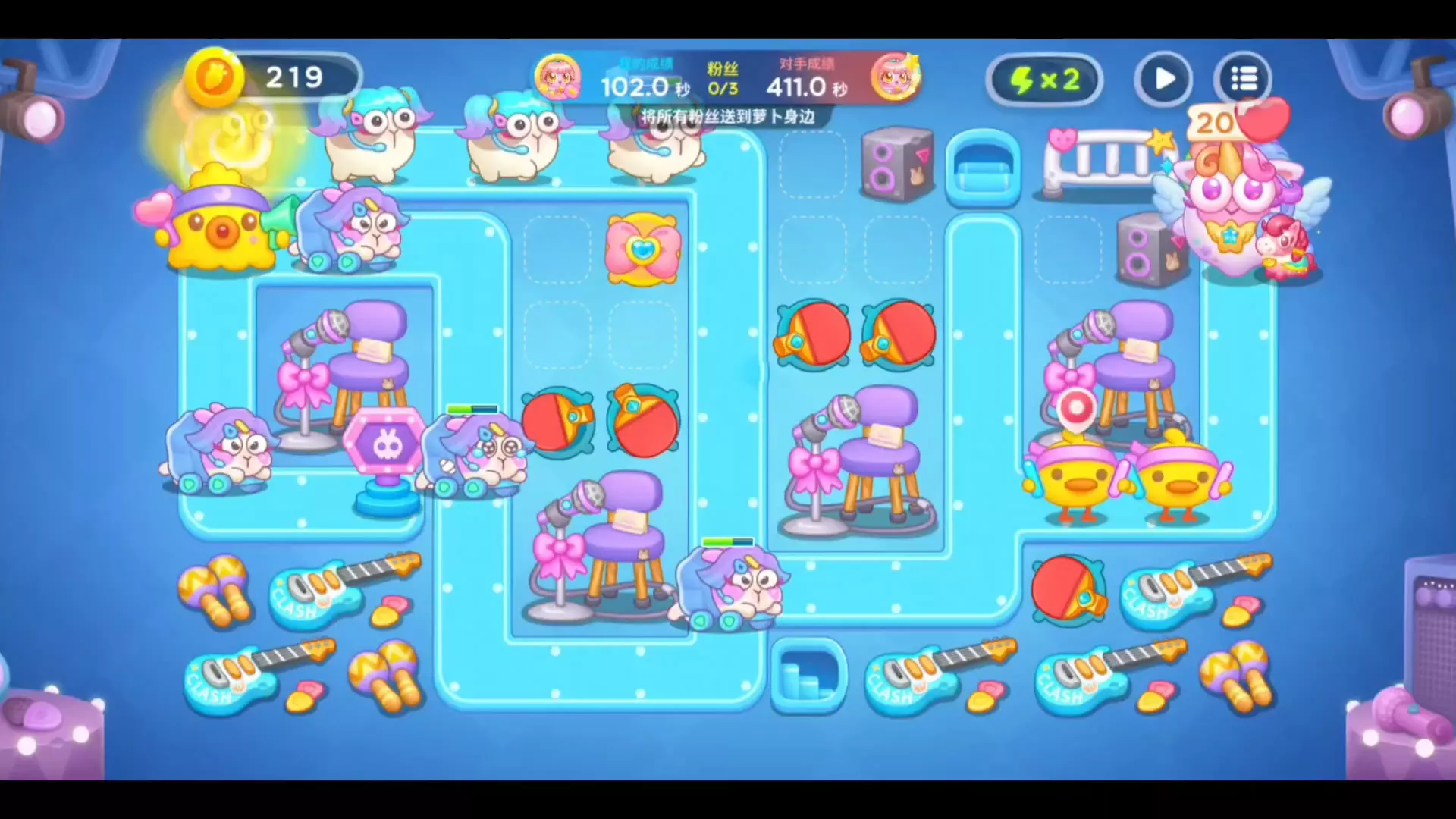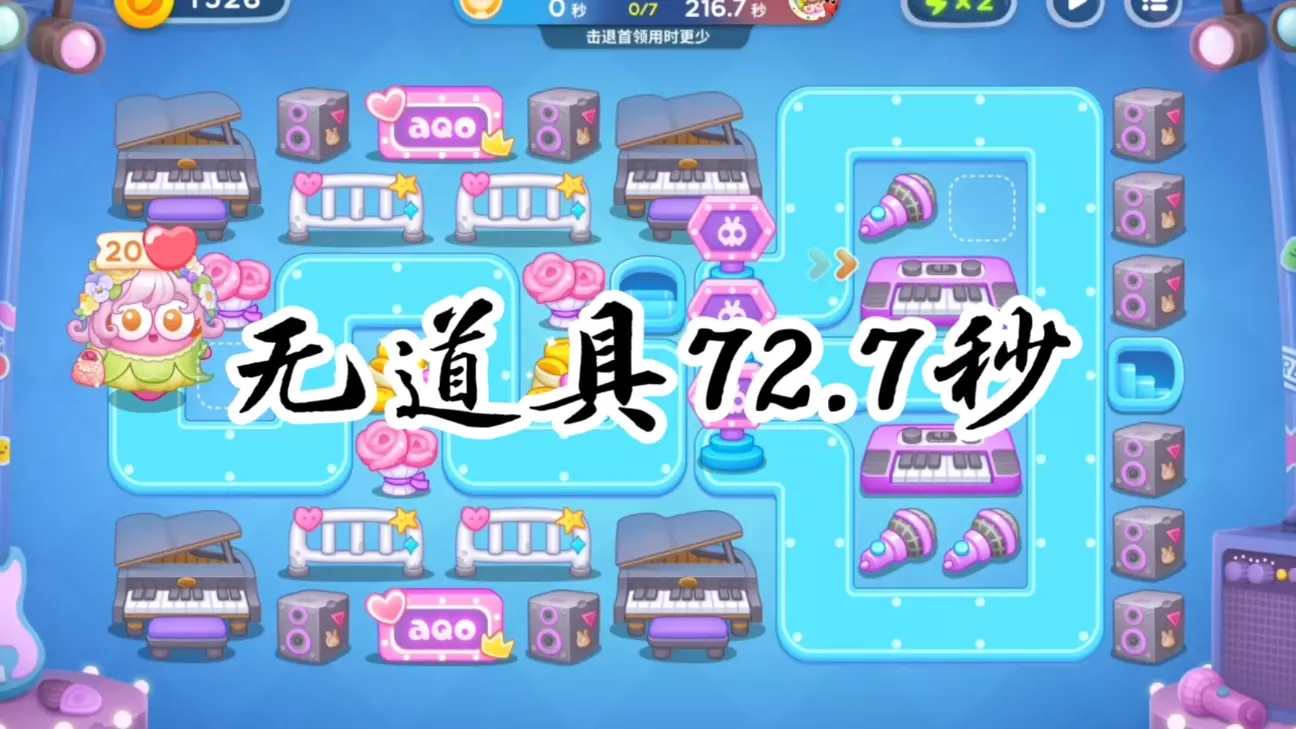 此图感觉兔子血量厚,首领血量薄,凭感觉而言90秒左右轻轻松松,70多秒需要走位不错,60多秒极好走位,需要优化布局。水平有限,纯属娱乐。