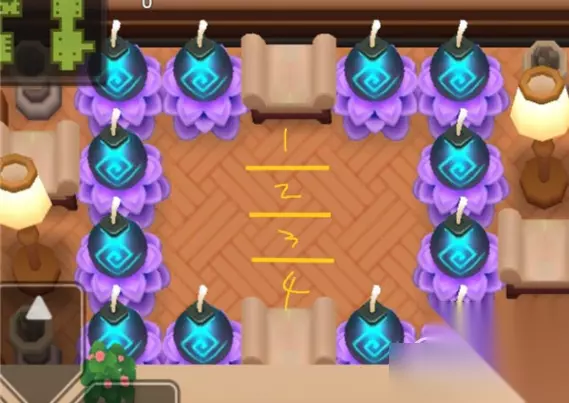 通关流程: 首先只要站在中线上,可以按照下图把中线分为四栏,只有临近中线的四颗炸弹会炸到;