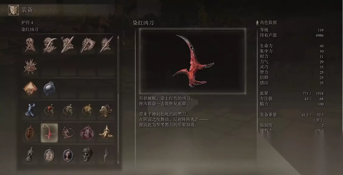长牙这把超长太刀也很受欢迎,获取方式相对简单些。不用做任何任务,直接在最初遇见太刀哥的湖边就能捡到。它的攻击范围比普通打刀大很多,适合喜欢保持距离的战斗风格。如果追求出血效果,可以搭配切腹战灰使用,这样打出来的伤害会更高。