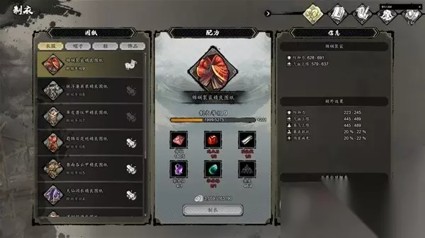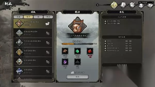 通关前属性图 鞋子没穿2品打造鞋,部分装备存在极品,但图纸除衣服外暂未找到,属性远不如打造的一品装备,所以毕业装目前应该是泰阿剑、锦澜袈裟、三山飞凤帽、乌云朝天靴、羊脂净瓶,另外首饰词条可极大加快发育速度,因此推荐前期快速获取乌天瘤身上的4品清心护符以及黄宗政身上的3品三清铃。