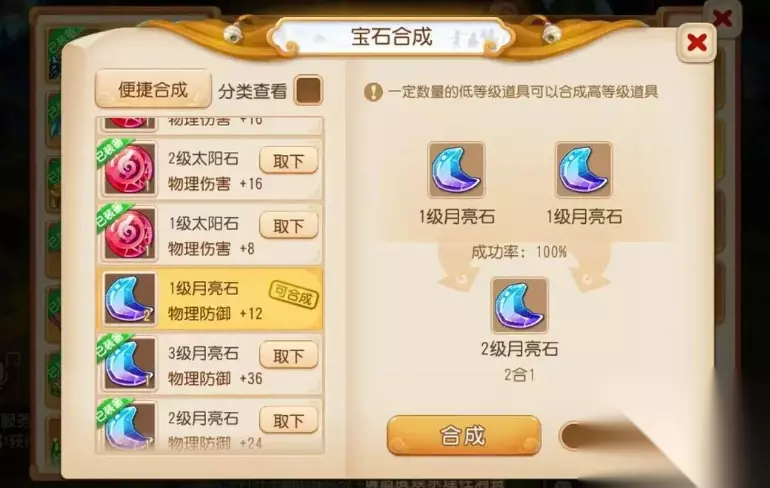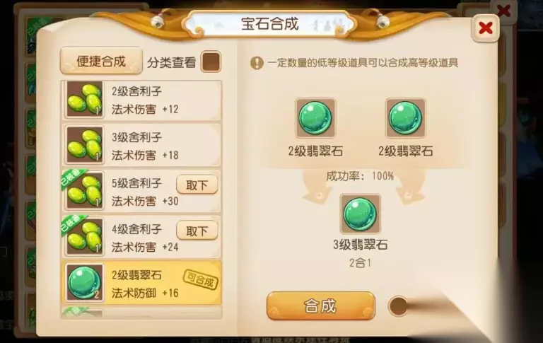 成败关键:掌握技巧,提升胜算 合成可不是凭运气傻乎乎地闷头合!成功率由三巨头说了算:宝石工艺技能、宝石等级、道具加成。想修炼此道?速速前往傲来国蝴蝶妹妹处拜师学艺吧! 技能制胜: 学到5 级宝石工艺,恭喜你!7 级以下的宝石合成对你来说简直是小菜一碟,成功率稳稳 100%!级别 8 到 11 嘛,随着宝石等级攀升,合成难度也像山路十八弯一样慢慢增加,失败的风险悄悄升高。但别担心,达到 7 级满技能,你就是宝石界的神话!1 级到 11 级宝石合成?统统 100% 成功!即使是 12 级以上的逆天宝石,成功率也有显著加持! 等级挑战: 简单说,宝石等级越高,合成失败这把悬在头顶的剑就越重。挑战12 级及以上?即使是满技能大师也得心里 “咯噔” 一下,失败几率那可是相当不容小觑!稍不留神,重金打造的材料就化为飞灰。 神器相助: 江湖险恶,好汉也有需要助阵时!利用活动、商城出品的宝石锤吧!关键时刻祭出这法宝,能给你宝贵的临时成功率加成!遇到高级宝石的生死挑战,它就是你的救命稻草。