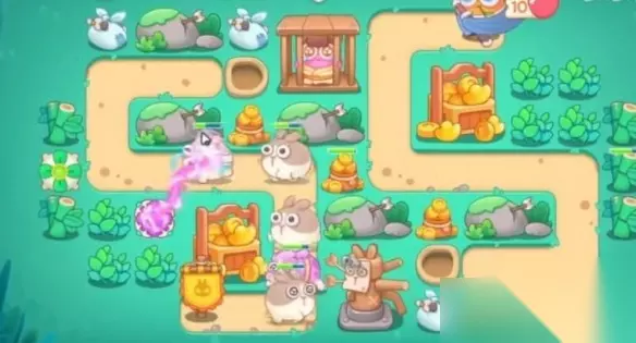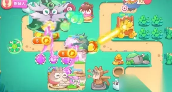 5、有钱就在地图上种炮塔,直到BOSS血量空了我们就赢了,注意有泡泡就要点掉哦。