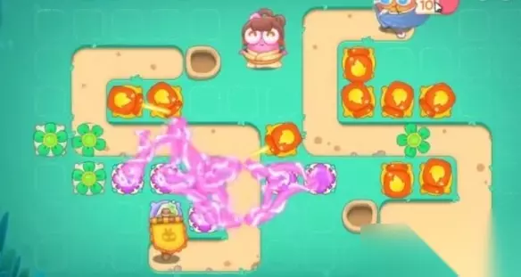 《保卫萝卜4》卧兔藏龙第40关满星攻略 1、首先我们中一个火瓶打怪开图。如图所示。