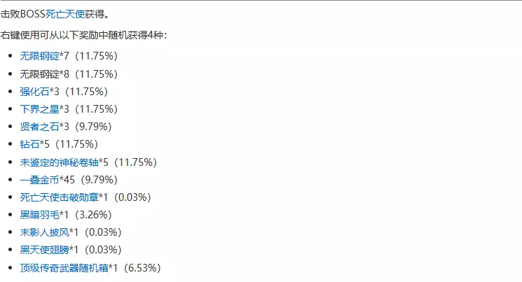 死亡天使宝箱奖励: