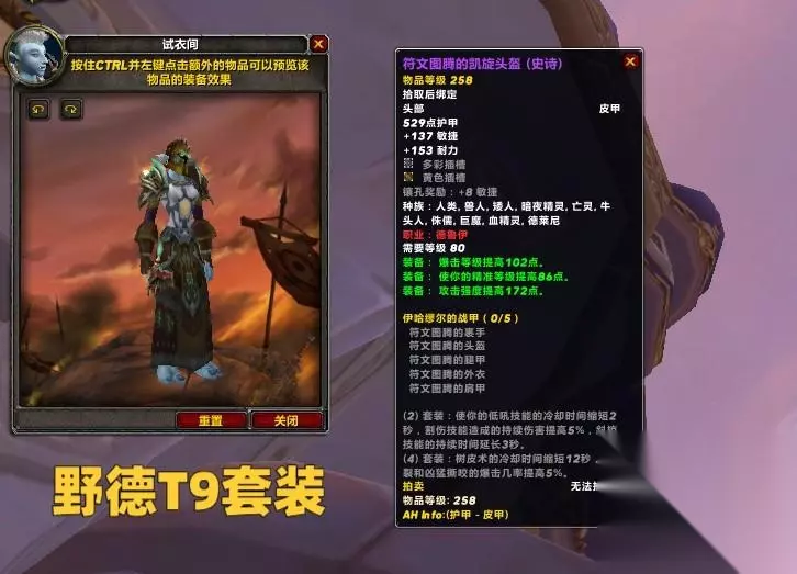 猫德的T9套装2件特效为低吼冷却减少2秒,割裂持续伤害提升5%,斜掠持续时间延迟3秒,4件特效为树皮术冷却减少12秒,割裂和凶猛撕咬提升5%暴击。 猫德加强之后的DPS表现是非常不错的,4T9套装不要裤子,继续使用1灯掉落的252裤子即可,这是P3阶段的BIS。 鸟德的T9套装2件特效月火术持续伤害就几率暴击,4件特效为星火术和愤怒提升4%伤害。鸟德在开荒期可以直接使用2T8+2T9的组合,T8腿的价值非常高,T9的4件一定别换腿。 布甲职业
