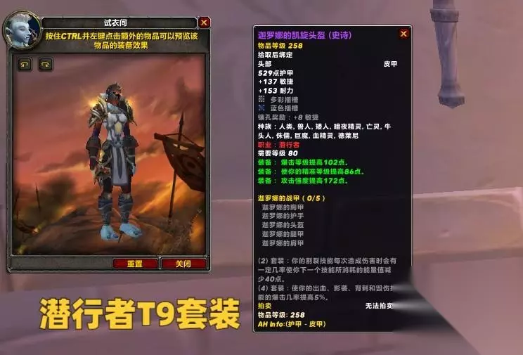 潜行者的T9套装2件特效为割裂持续伤害有几率降低下一次技能40点能量消耗,4件特效为常用技能5%暴击。 潜行者的套装效果可以说是中规中矩,P3阶段尽量还是以刺杀贼为主,T9选择头盔和手套即可。