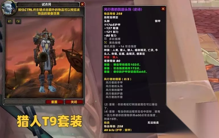 猎人的T9套装2件特效为毒蛇钉刺可以暴击,4件特效为有几率提升宠物600点攻强,持续15秒。 估计很多猎人玩家都打算在P3阶段转射击猎了,不过前期射击猎的伤害依然无法碾压生存猎,如果强行堆硬破的话,还会导致攻强和暴击下降,因此可以继续使用生存猎。至于套装取舍方面,生存猎不要裤子,射击猎不要胸甲。