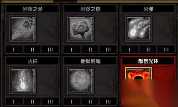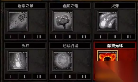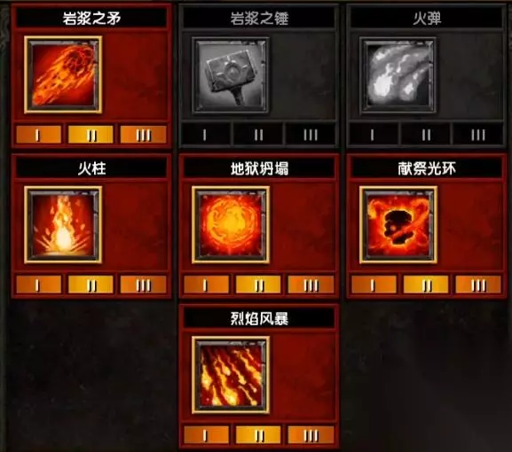 火法 火焰技能 主动:岩浆之矛、火柱、地狱坍塌、献祭光环、烈焰风暴