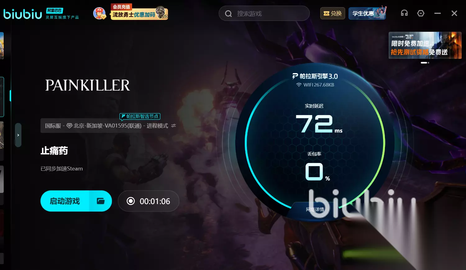 更值得称道的是,biubiu加速器刚刚完成重磅升级,全新3.0帕拉斯引擎已全面上线,经过职业选手严苛环境亲自验证的新引擎,让你轻松获得如职业赛事般稳定低延迟的极致游戏体验。