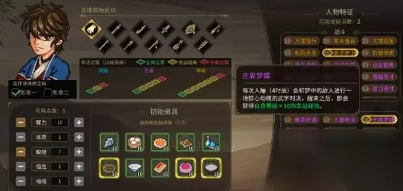 【攻略大全】 大侠立志传无名地区新手开局怎么玩 1、建议新手玩家选择拳开局,然后加点推荐选择10臂力、7敏捷。