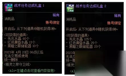 第2类任务,达到指定数量的雇佣兵,可领取对应奖励,获得“4个初阶材料礼盒”,随机获取“60个先兆水晶、13个黄昏水晶、10个黑暗之眼”,还有“9个高阶材料礼盒”,随机获取“125先兆水晶、25黄昏水晶、20黑暗之眼”材料。 第3类任务,升级训练所到最高级,领取“2个高阶材料礼盒”。