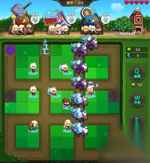 总的来说,就是每天最多只能玩“1次签到模式”和“5次挑战模式”。 其次,这是一个塔防类小游戏,玩家用“Q键”消耗材料布置角色,用“W键”合成同类角色进行升级,阻挡怪物攻击“老家”,就算成功。