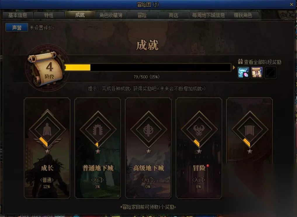 这个则是110级版本的新玩法,大家在自己的冒险团当中,可以完成固定的任务来获得不同的成就奖励,达到对应点数就可以获得刷图点数或者是材料与史诗装备等等,可以加快玩家们的毕业速度。而且不同角色的成就系统是相互独立的。所以也是比较肝的。 刷图点