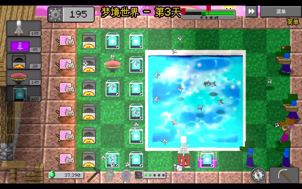 头牛:头牛能召唤各种怪物,生命300,速度二,35%召唤普通僵尸,29%召唤皮毛僵尸,21%召唤铁盔僵尸