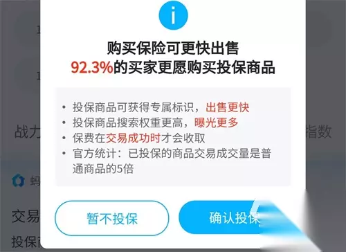 【交易猫】最新版下载 点击下载 对于卖方来说,想要快速的成交账号,肯定是需要有大量曝光的,尤其是极乐、无常一类的高价值游戏号,它们往往成本很高,价格方面也不会低,在出售的时候,想要快速成交,选择投保交易险就能够帮助到大家,不仅能提高出售的效率,同时特殊标识也能让商品一眼就让买家发现,重点是在卖出成功以后,它才会收取大家保费。